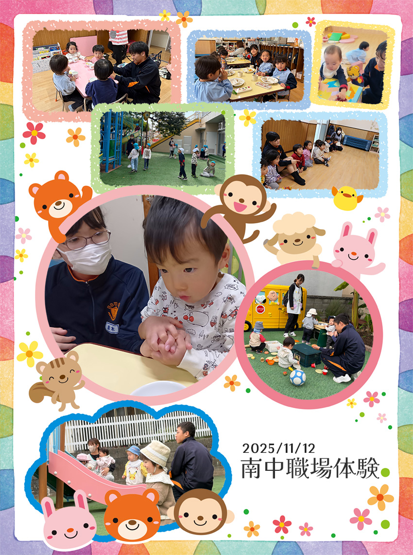 南第二中学校のお兄さんお姉さんが職場体験に来ました。自己紹介をすると、みんな真剣に聞いていました。
