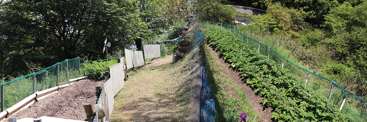 (例年畑で育つ野菜:きゅうり、ピーマン、トマト、なす、大葉、かぼちゃ、すいか、さつまいも、じゃがいも、たまねぎ、ほうれんそう、白菜、ブロッコリー、小松菜、にら、よもぎ等々)